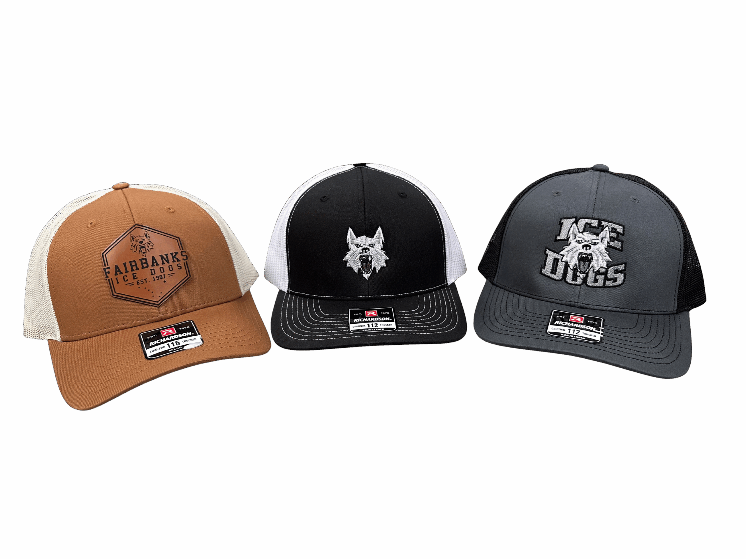 Grey & Black are Richardson 112 snap back hats